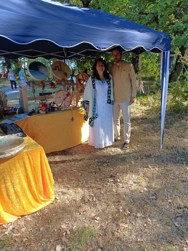 Sébastien. Passionné par les savoirs anciens et les secrets de nos origines, il a suivi les traces des peuples premiers jusque dans les étoiles. Il réalise notamment les peintures sur les tambours.