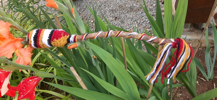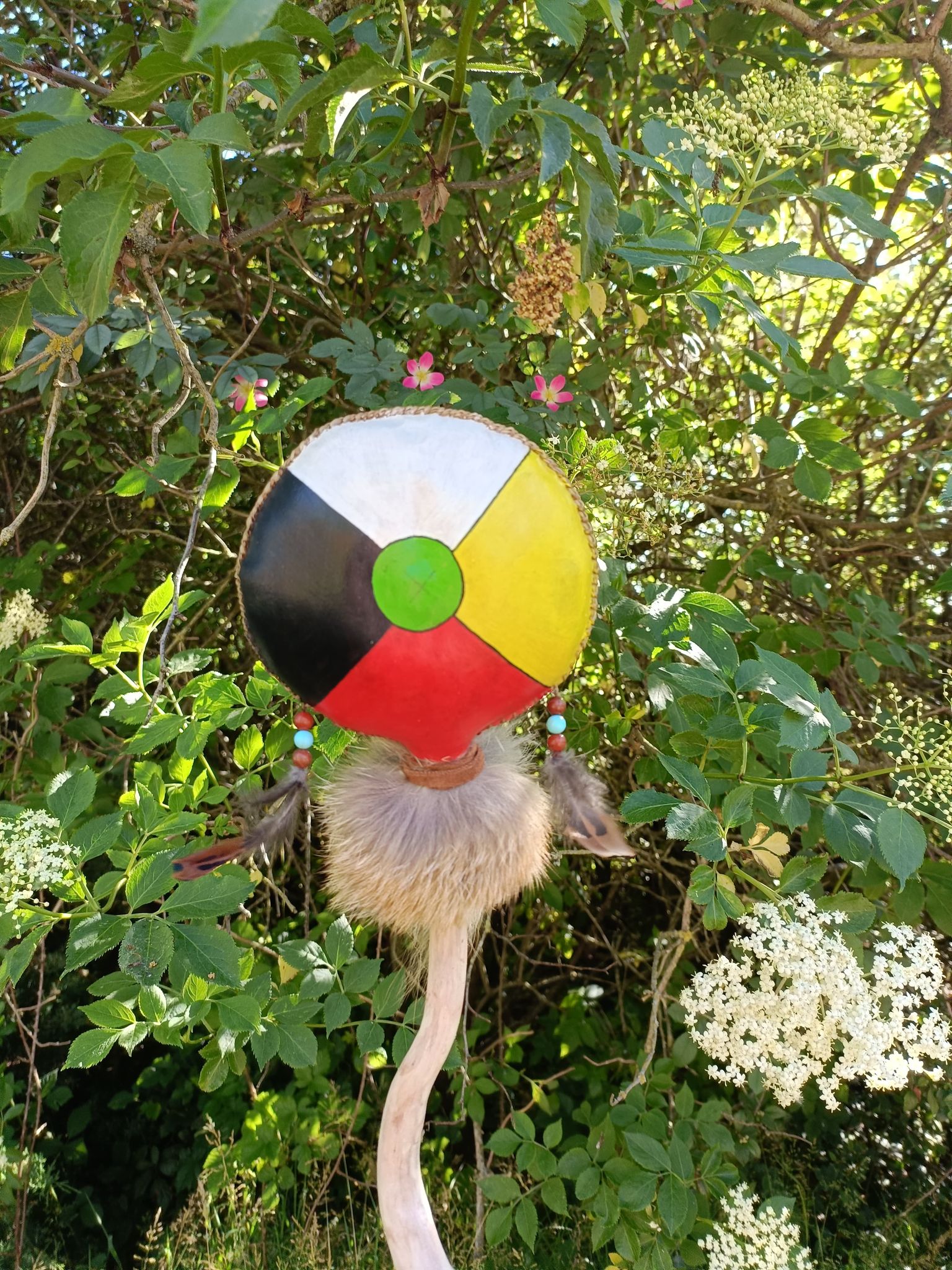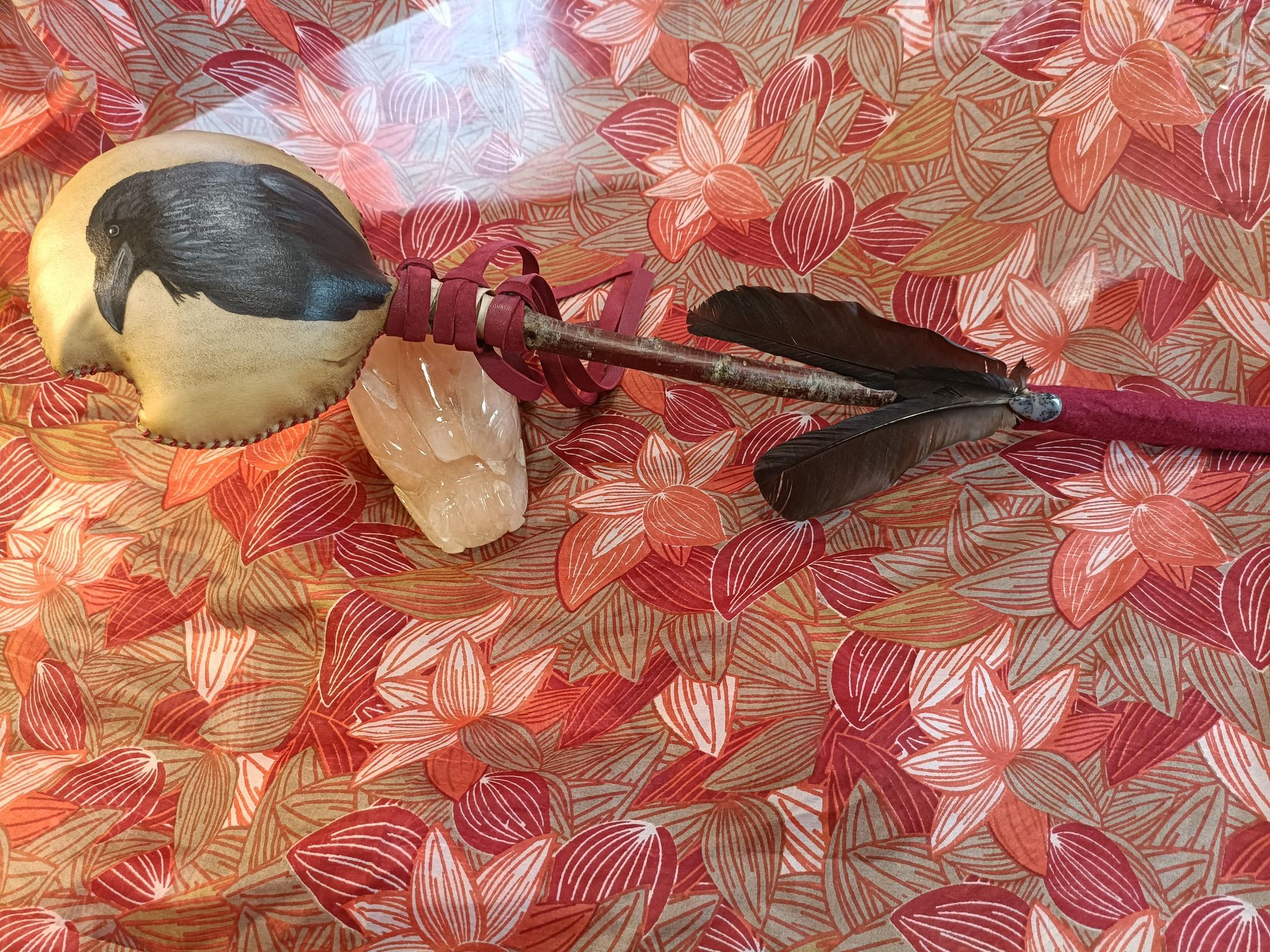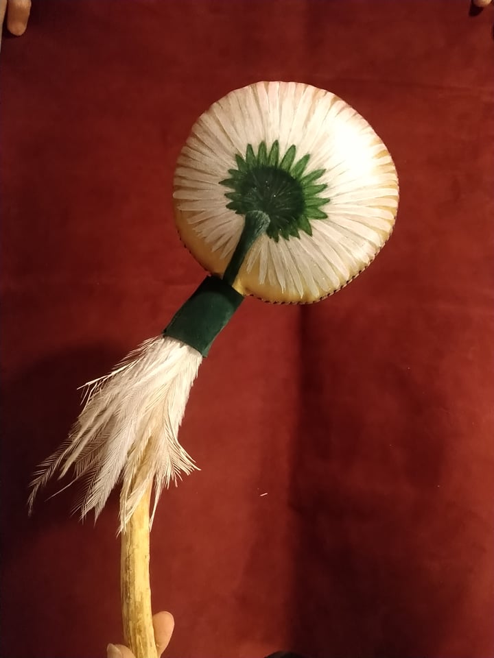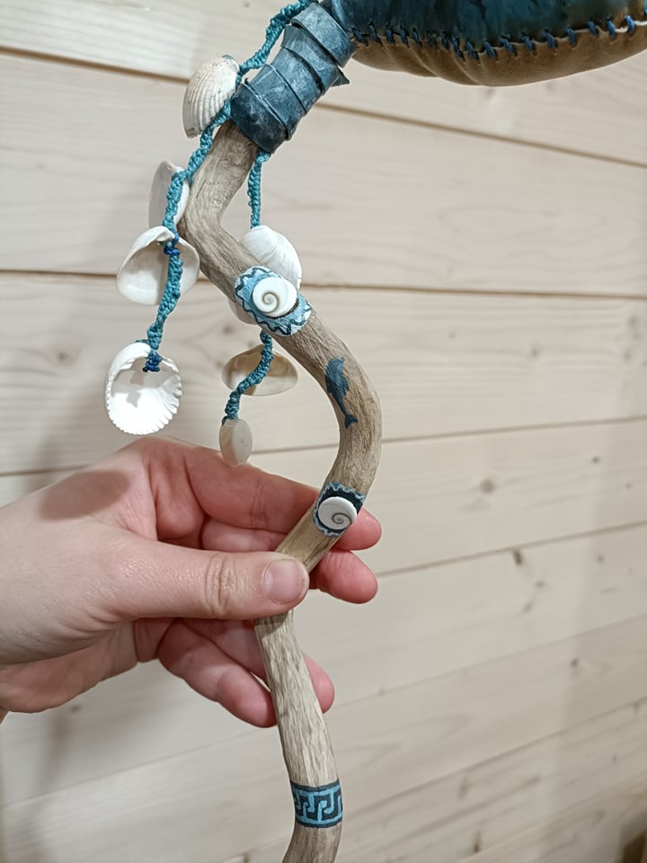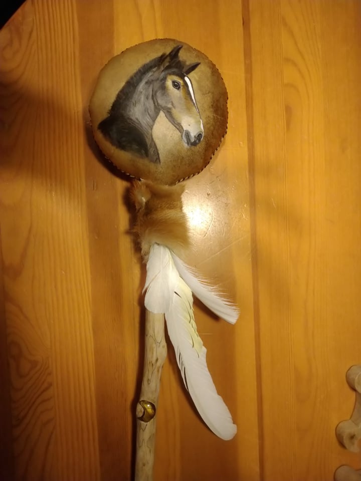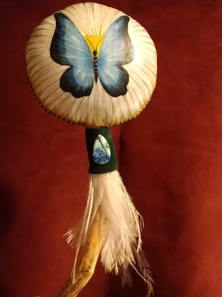 Le hochet relie au cosmique et il est idéal de commencer et de finir une pratique avec celui-ci car il va nettoyer les énergies, les élever pour créer la connexion terre-ciel. Sa vibration pourra s’ajouter harmonieusement au rythme du tambour.