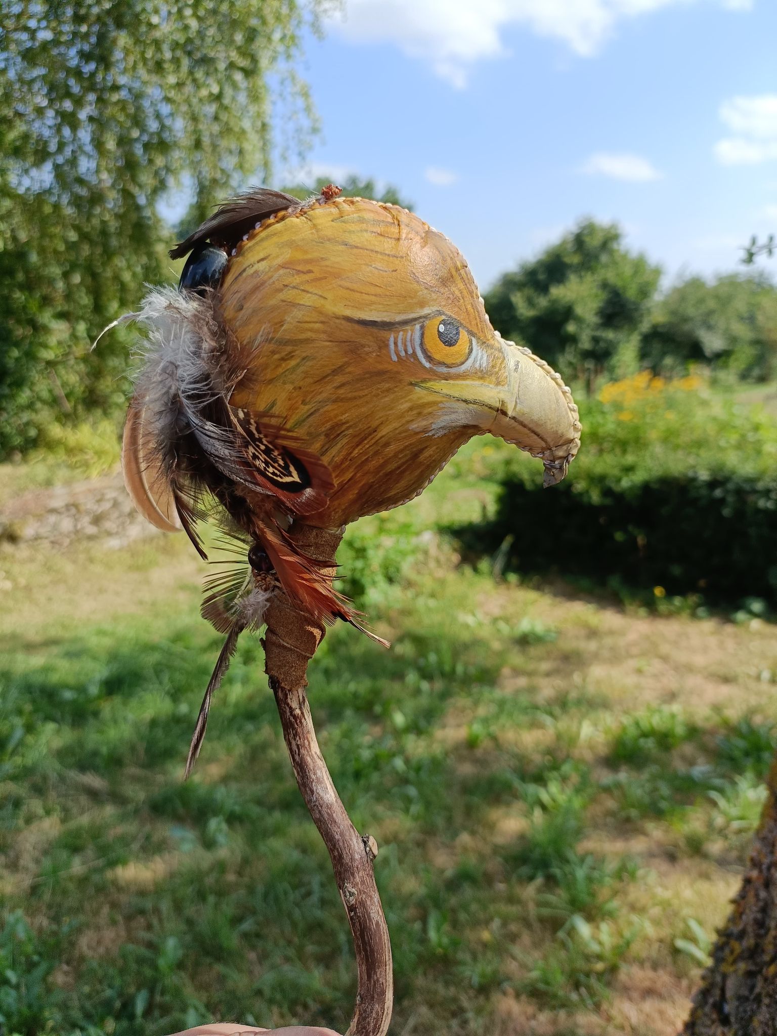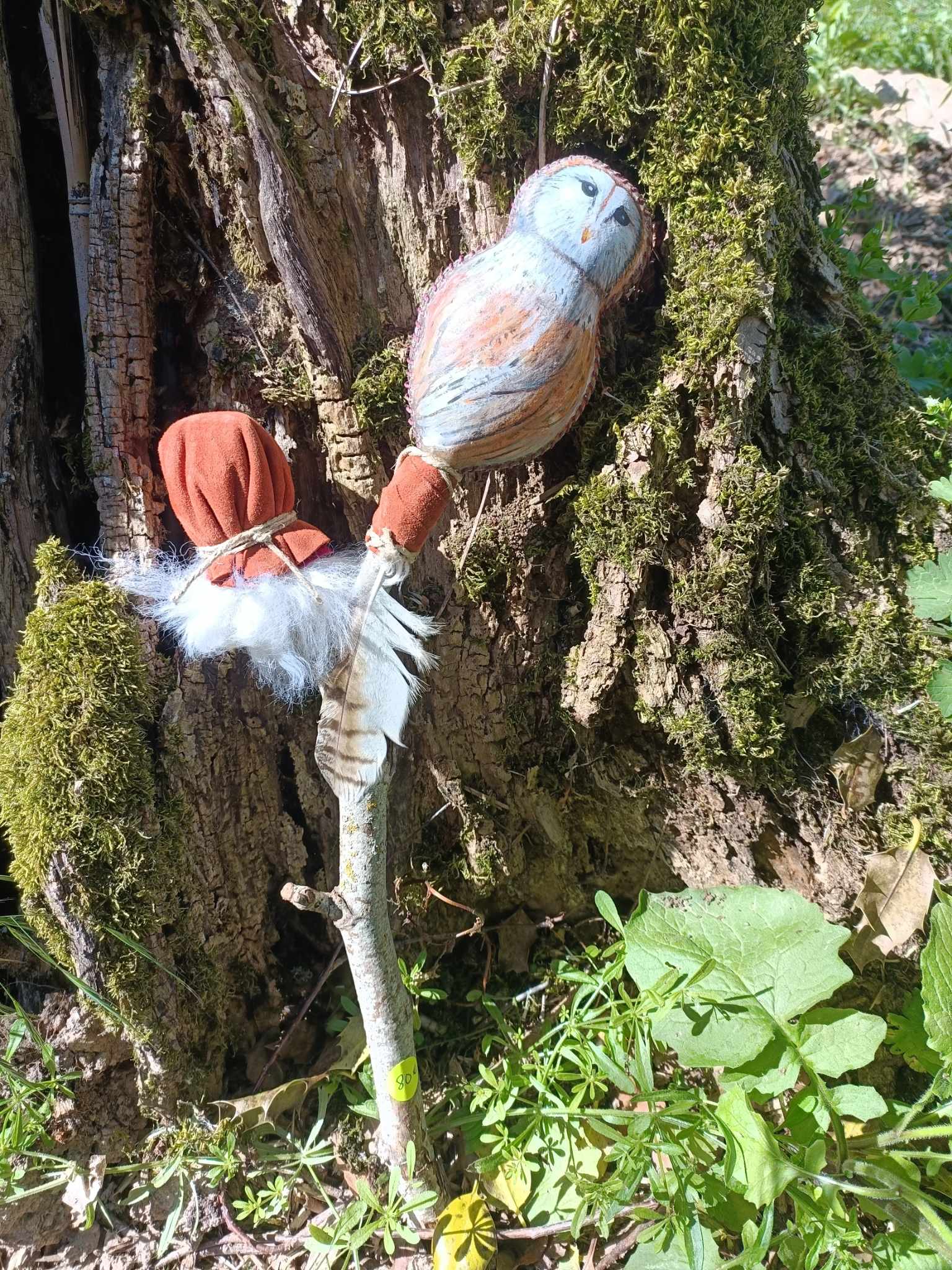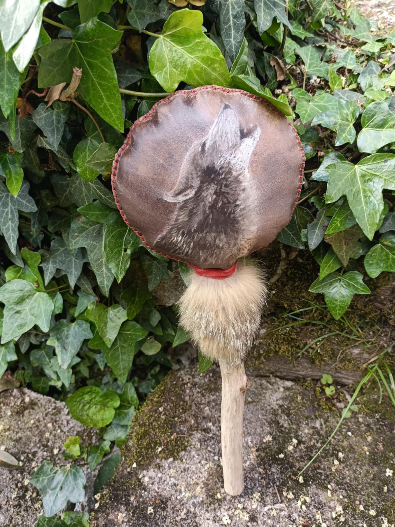 Nous avons réalisé ces mailloches en s’inspirant de la technique des indiennes mapuches d’Amérique du sud. Elles donnent un son plus feutré que la mailloche en peau et sont d’une grand durée de vie.