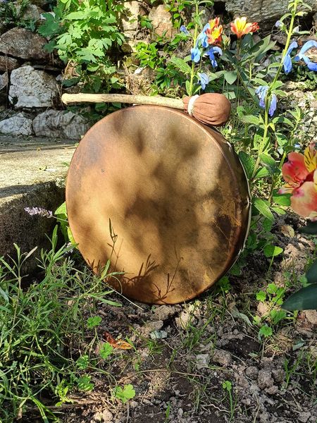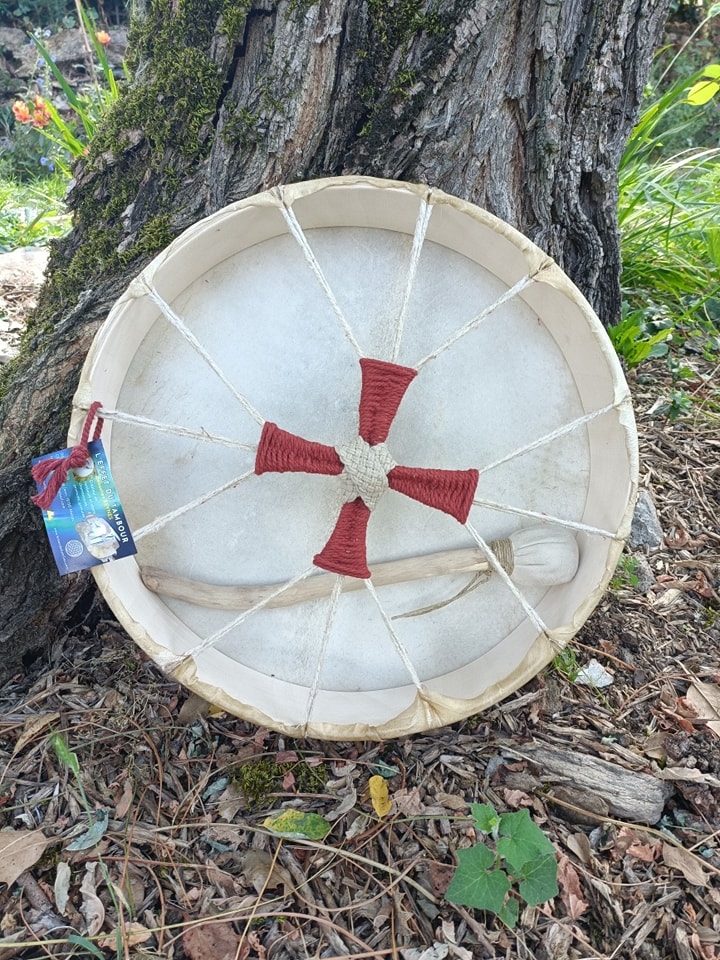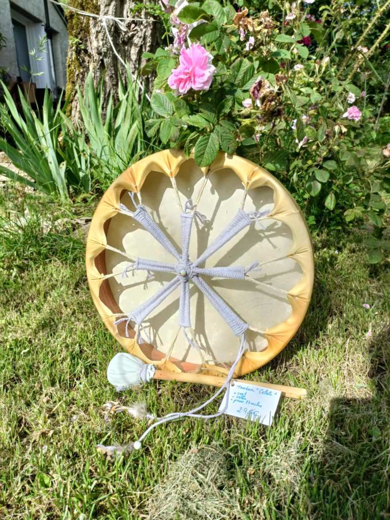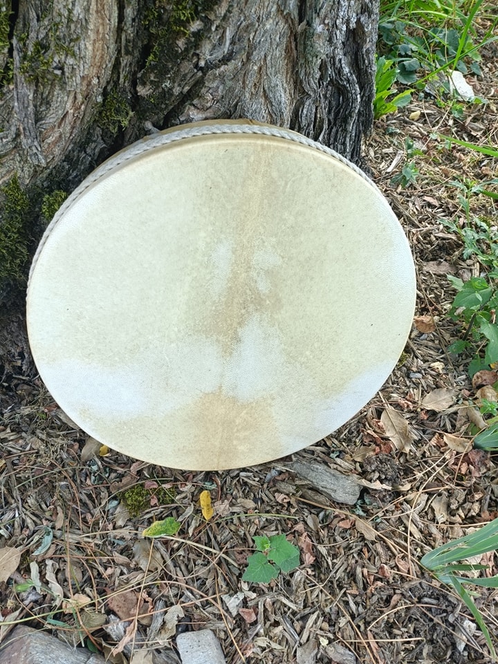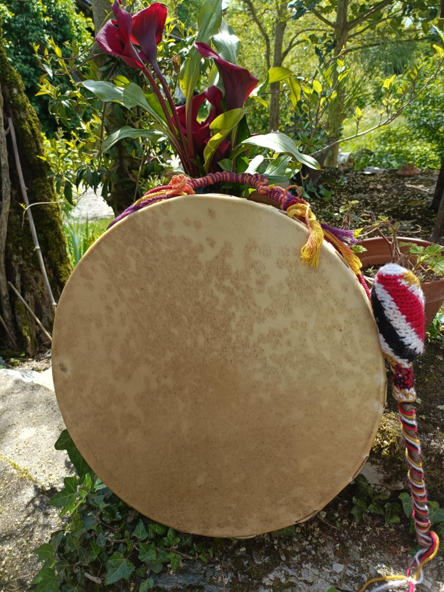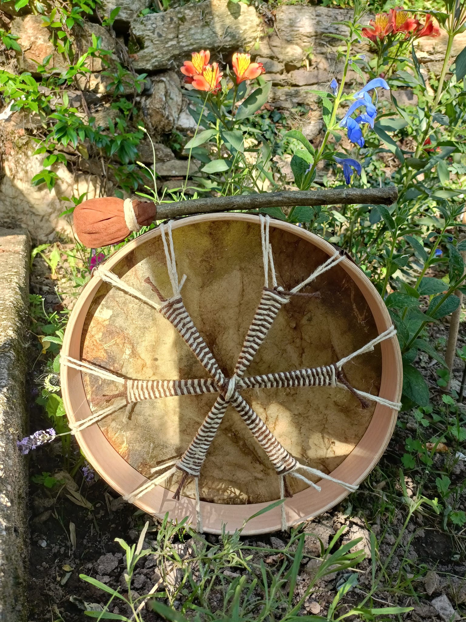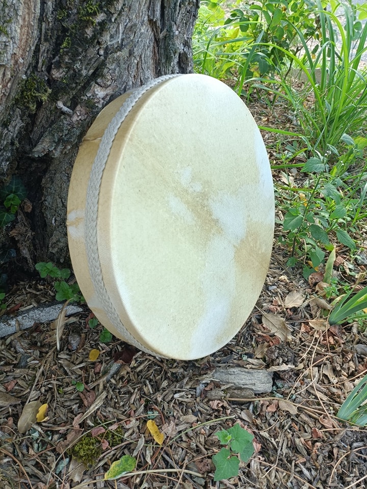 Tambour de 40 cm en peau de biche sur un cadre en hêtre. Ce tambour est léger, facile à transporter !